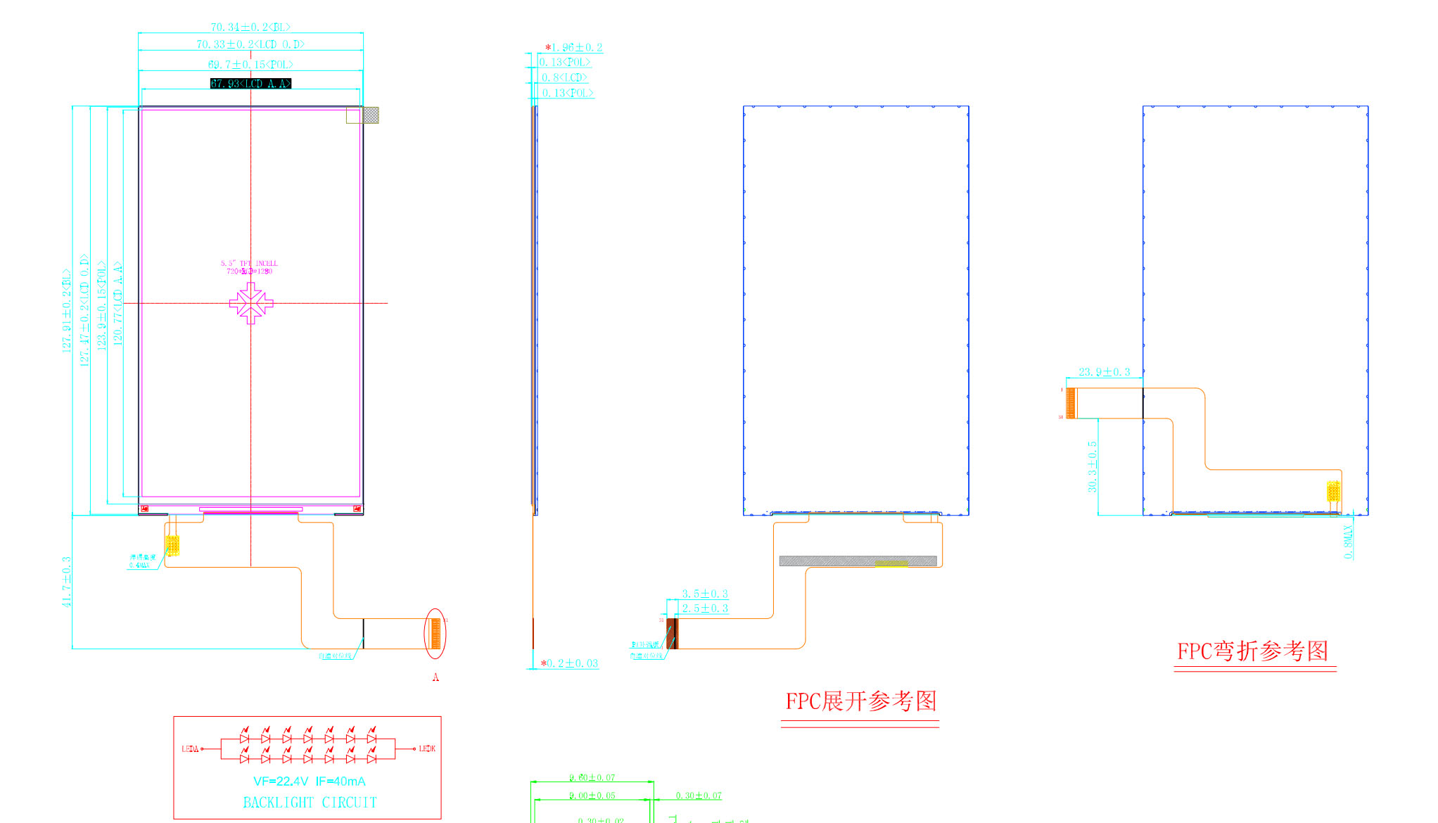 | Esquema dimensional | 70,34 (ancho) x 127,91 (alto) x 1,96 (alto) | LED de retroiluminación | 14 piezas |