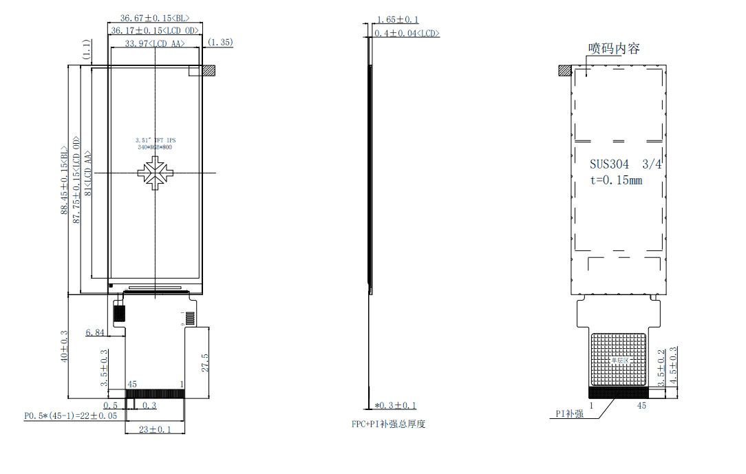 EstePantalla de tira larga de 3,51 pulgadasCuenta con una resolución de 340*800, un ángulo de visión completo IPS y utiliza el controlador IC ST7701S maduro y estable. Admite interfaces RGB de 16/18/24 bits e interfaces MIPI de 1/2 canal. El número de modelo de Shenzhen Hongjia Technology es HJ3510-01. Cuenta con un conector estándar de 45 pines y una interfaz de pantalla táctil capacitiva I2C. Esta pantalla tipo barra de tamaño pequeño es adecuada para su uso en pequeños electrodomésticos, dispositivos domésticos inteligentes, equipos de belleza, cafeteras, equipos médicos y otros productos. También ofrecemos servicios de personalización.
