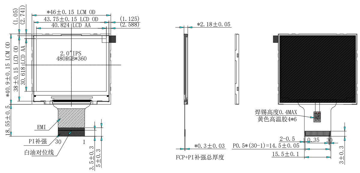 Como pantalla de visualización tradicional, laPantalla LCD TFT de 2,0 pulgadasLos clientes lo utilizan habitualmente en modo vertical con una resolución de 240*320. Para requisitos de resolución más altos, el Sr. Liu, ingeniero de Shenzhen Hongjia Technology, recomienda una pantalla horizontal de 480*360. Esta pantalla admite interfaces MIPI y RGB, utiliza el controlador IC ST7701, admite interfaces MIPI de 1/2 canal, un conector estándar de 30 pines, ángulo de visión completo IPS y admite un rango de temperatura de funcionamiento ultra amplio de -30 a 80 grados Celsius. El brillo puede alcanzar entre 600 y 1000 lúmenes, lo que garantiza una visibilidad clara incluso a la luz del sol.